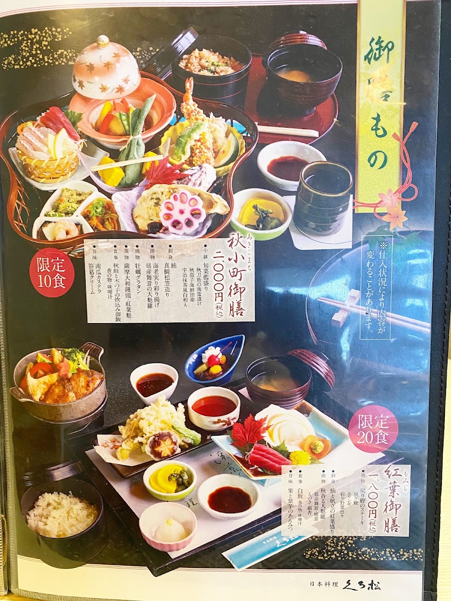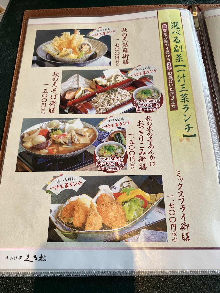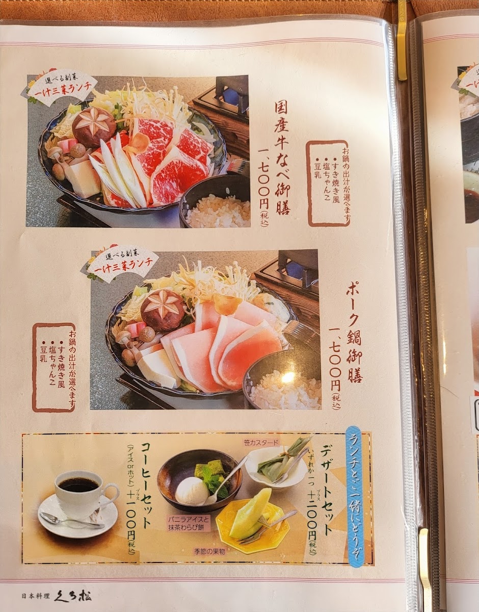 From a reviewer’s perspective, the menu at Kuromatsu Maebashi feels carefully curated to showcase both seasonal elegance and regional comfort, with each set meal presenting a complete and satisfying experience. Signature selections such as 黒松御膳 and 妙義御膳 stand out for their balanced composition, pairing refined presentation with flavors that feel grounded and traditional. For guests interested in local Gunma specialties, おっきりこみ御膳 offers a hearty, reassuring option, while 赤城豚の冷しゃぶ御膳 highlights the clean, delicate taste of Akagi pork in a lighter, refreshing style. Seasonal sensitivity is a clear strength of the menu, seen in offerings like 秋小町御膳, 秋の天ぷら御膳, and 秋空御膳, which emphasize autumn ingredients and textures, as well as the thoughtfully designed 冬レディース御膳, tailored to winter dining with a softer, more comforting approach. Meat lovers are well catered for with the bold flavors of ステーキ重, the savory depth of ポークジンジャー, and the premium indulgence of 霜降り 和牛 の 石 焼き, where marbled wagyu is enjoyed hot on stone for maximum aroma and richness. The menu also allows flexibility through individual items such as お造り and みそ, which complement the set meals without overwhelming them. To close the dining experience gently, simple desserts and drinks like バニラ アイス and ホットコーヒー provide a clean, familiar finish. Overall, the menu leaves a strong impression of consistency and intention, combining seasonal set menus and well-chosen à la carte items into a cohesive culinary narrative that feels both elevated and approachable.